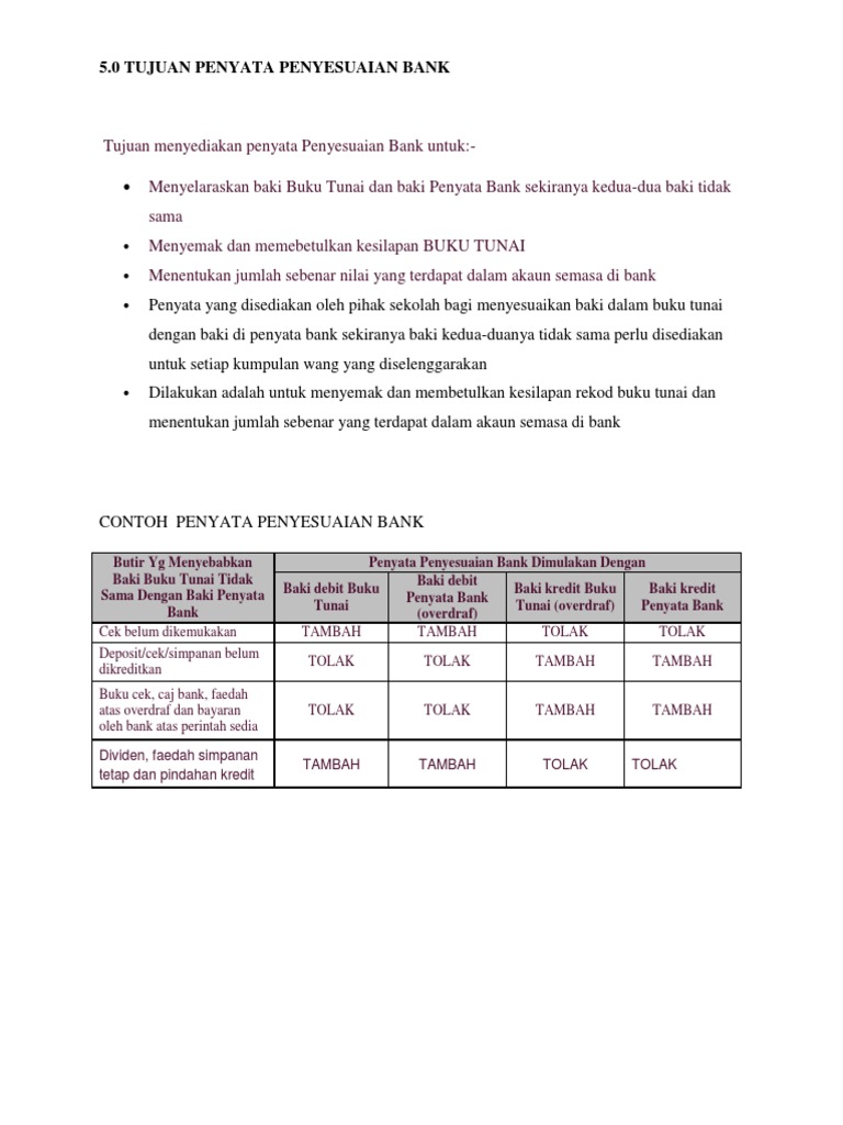 Https Gurubesar My Wp Content Uploads 2019 04 Form 5 Bab 3 Pdf from Penyata penyesuaian bank satu penyata disediakan oleh pemegang akaun semasa untuk menunjukkan kesan : I untuk menghitung baki tunai di tangan ii untuk menentukan jumlah modal perniagaan iii untuk menyemak ketepatan catatan dalam buku tunai iv untuk mengetahui bayaran dan deposit. Download lagu 11 penyata penyesuaian bank mp3 dan video mp4. 1 bank reconciliation statement concept by saheb academy class 11. Ü tunai adalah aset mudah cair yang penting. Sila semak latihan ini dalam website tingkatan 5 dan cetak. Penyata penyesuaian bank adalah akaun yang #budakakaun boleh buat dalam masa hanya 15 minit. Traditional banks are slow, inefficient and not digital — we are different.